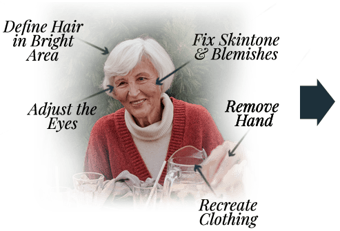 Memory Portraits makes personalizing your next service simple and fast. Our skilled artists can remove unwanted items from the background, enhance the lighting, and reposition the subject to make your portraits look professional and exceptional. We offer a broad range of styles and options and can even create unique custom backgrounds upon request.